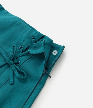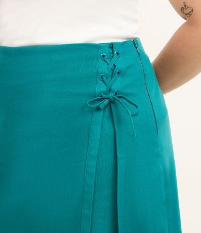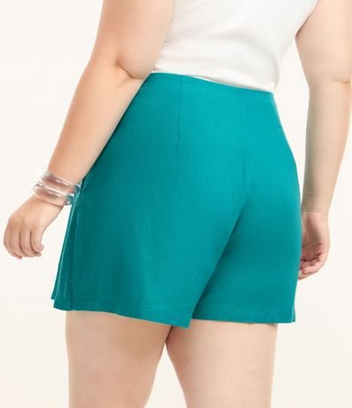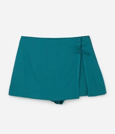 Ref: Short saia confeccionado em viscolinho composto majoritariamente por viscose certificada e linho. A peça tem amarração lateral para regulagem e fechamento por zíper "invisível".
