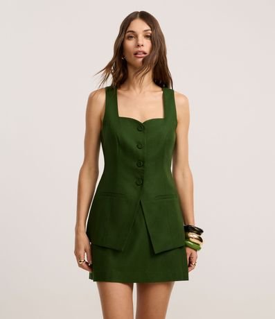 Ref: Short saia reto alfaiatado, confeccionado em viscolinho, com cintura alta, passantes no cós e fechamento atrás por zíper. Este produto possui viscose certificada em sua composição, sendo ambientalmente mais responsável.