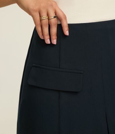 Ref: Short saia alfaiatado de cintura alta, confeccionado em tecido plano, com lapelas frontais que simulam efeito de bolsos e transpasse com recorte V na barra.
