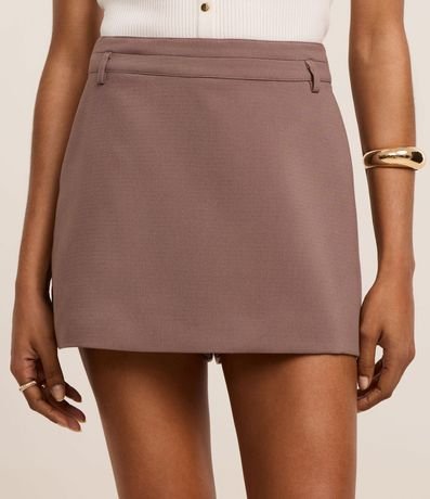 Short Saia Alfaiatado com Pespontos e Passantes no Cós