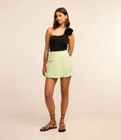 Ref: Short saia feminino alfaiatado, com detalhe de camadas e textura maquinetada.