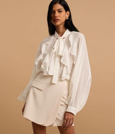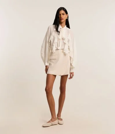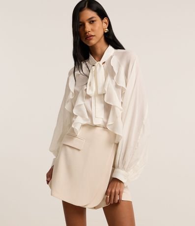 Ref: Short saia feminino alfaiatado, com detalhe de camadas e textura maquinetada.