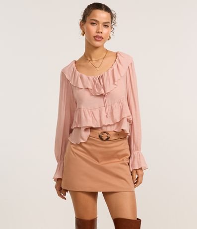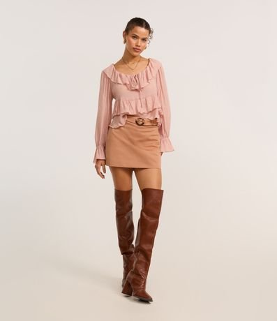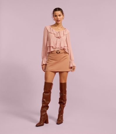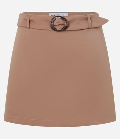Ref: Short saia feminino confeccionado em algodão e poliéster, curto, de corte alfaiatado e sem estampa. Possui passantes no cós, cinto faixa embutido e fivela oval matizada.