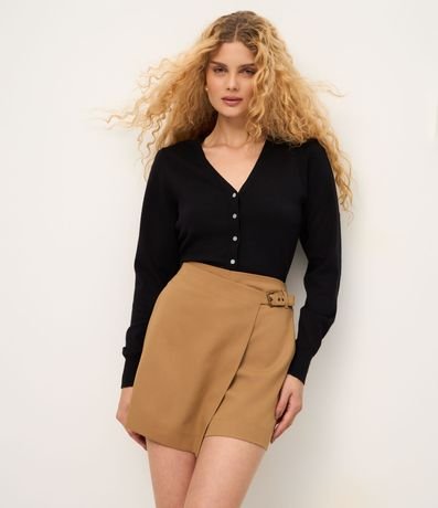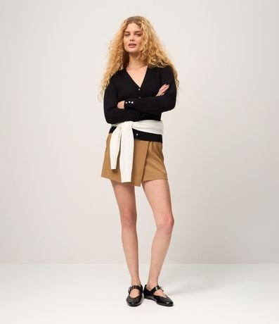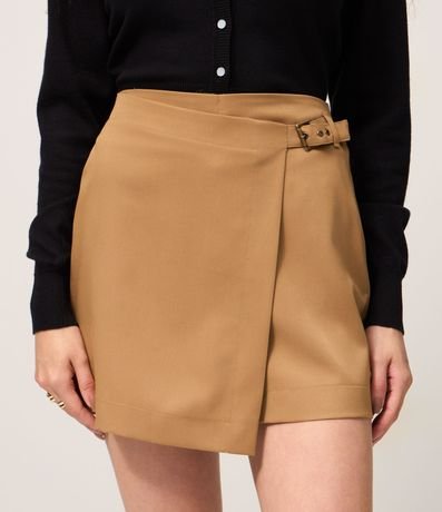 Short Saia Alfaiatado em Viscose com Transpasse Afivelado