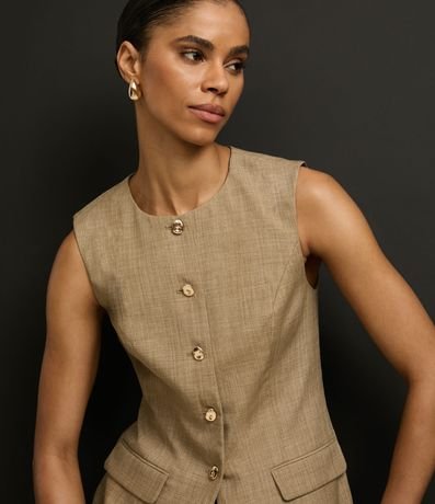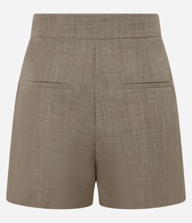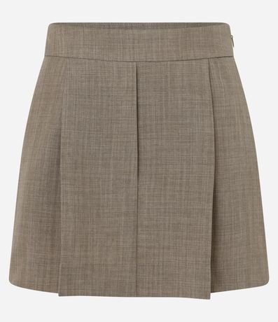 Ref: Short saia alfaiatado, sem estampa, com textura. A peça tem cintura alta, pregas frontais e cós liso.