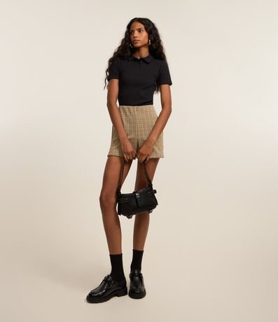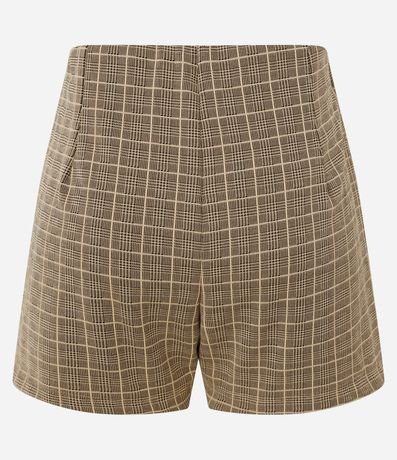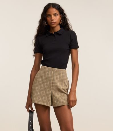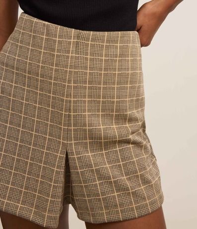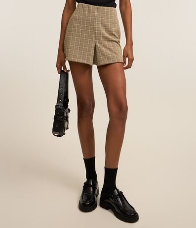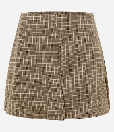 Ref: Short saia com padronagem xadrez construida na trama do tecido (jacquard). A peça apresenta cintura alta e fendinha frontal.