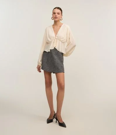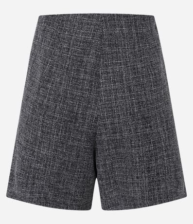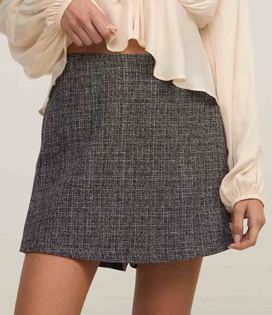 Ref: Short saia feminino de modelo cintura alta, texturizado e com fechamento lateral por zíper. Possui tecido com efeito mescla.