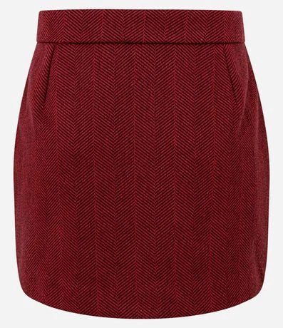 Short saia feminino confeccionado em poliéster. Possui padronagem espinha de peixe, cós com acabamento transpassado frontal e caimento reto. Peça moderna e versátil para compor looks elegantes.