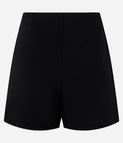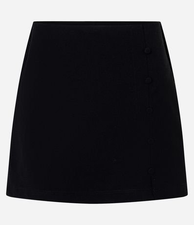 Short saia curto confeccionado em crepe com botões forrados na lateral e sem estampa.