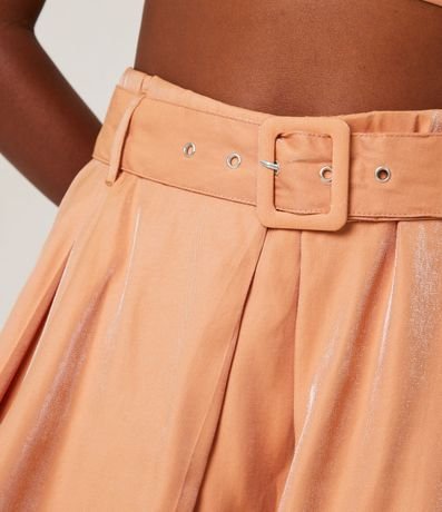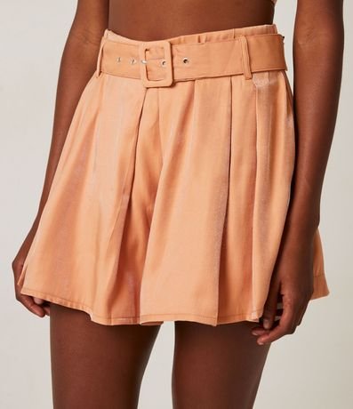 Ref: Aliando charme e conforto, o short saia em crepe pregas e cinto com fivela forrada, proporciona visuais elegantes e cheios de estilo. Perfeito para combinações leves, o modelo metalizado encaixa-se delicadamente em diversas composições com outras peça. Prático, pode ser usado tanto em eventos formais como em looks casuais para o dia a dia.