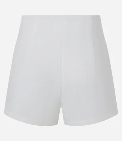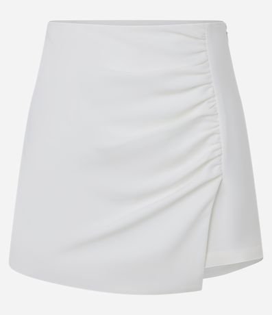Short saia curto com fechamento por zíper na lateral e drapeado frontal.