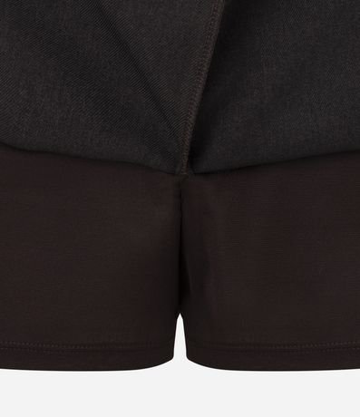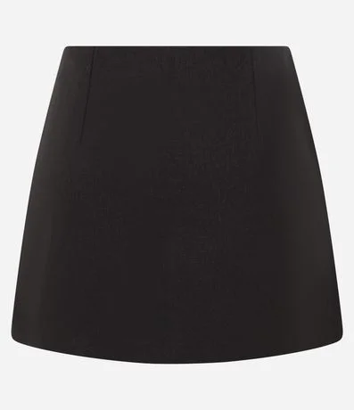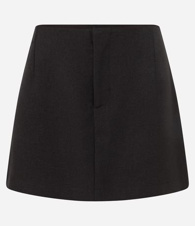Short saia mini, sobreposta com corte alfaiatado e sem estampa.