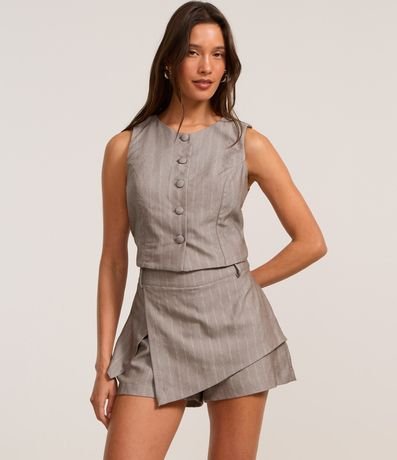 Short Saia em Alfaiataria com Listras e Cintura Baixa