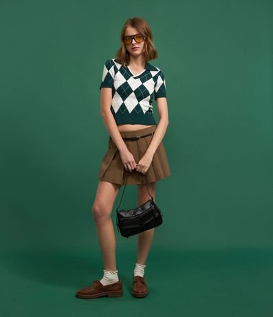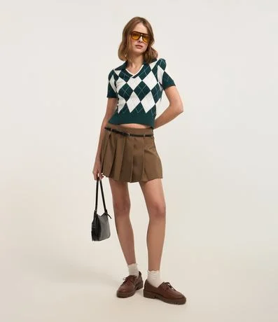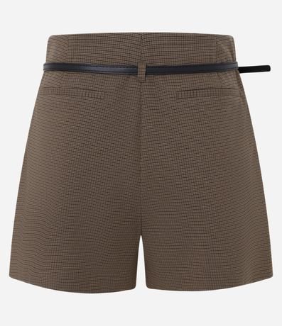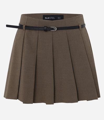 Ref: Short saia feminino confeccionada com material mais sustentável, cós com passante, cinto fino contrastante, fechamento lateral por ziper. Peça plissada com estampa xadrez.