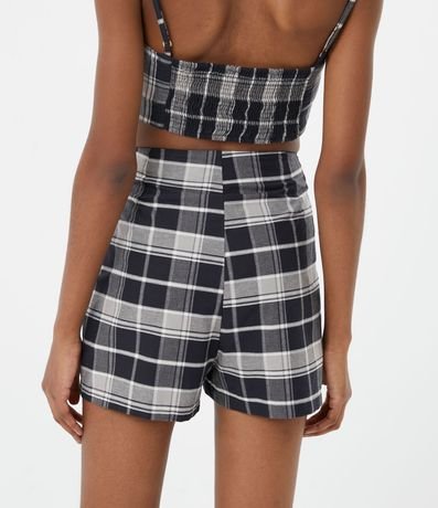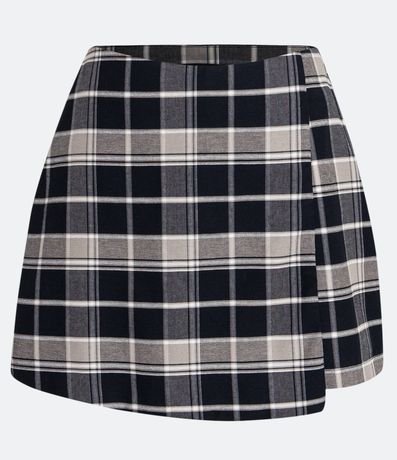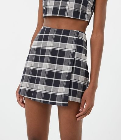 Ref: Short saia com estampa xadrez e transpasse frontal. Versátil, o modelo que está super em alta, traz praticidade e conforto. Combinado com meia calça, por exemplo, a peça compõe um look quentinho e estiloso.
