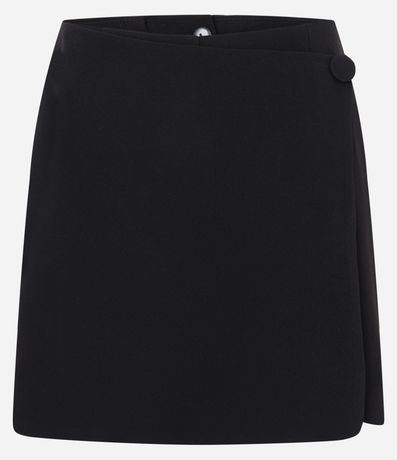 Short saia, confeccionado em bengaline, com transpasse frontal com abotoamento e fechamento atrás por zíper. Item com forro.