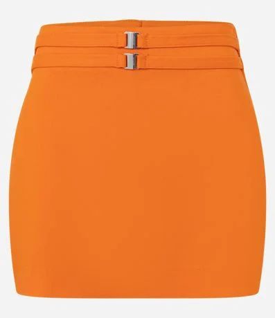 Short saia feminino em bengaline, com cinto duplo e fivelas metálicas que destacam a cintura. Modelagem ajustada, caimento confortável e moderno para compor looks de festas e happy hours.