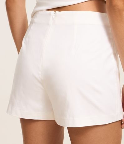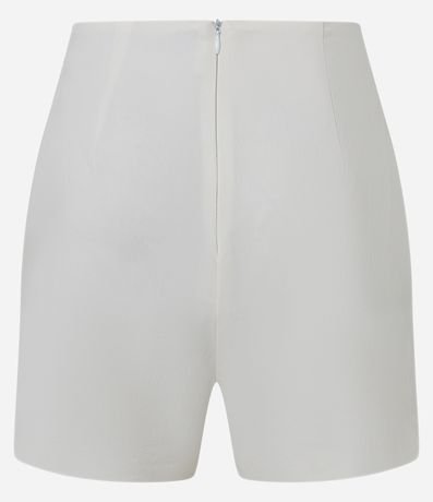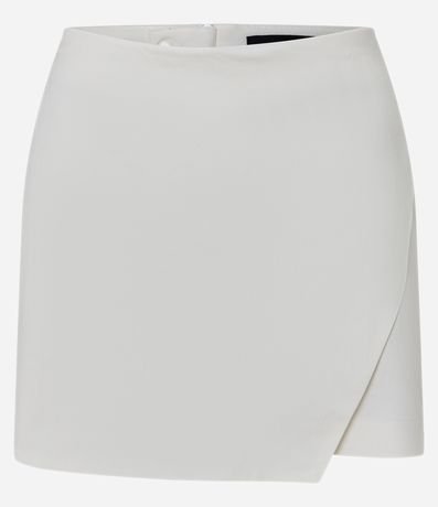 Short saia curto, confeccionado em bengaline, com fechamento por zíper invisível na parte de trás e recorte frontal.