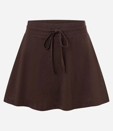 Short saia feminina em malhão de algodão certificado bci com boas práticas ambientais, peça com cós elástico.