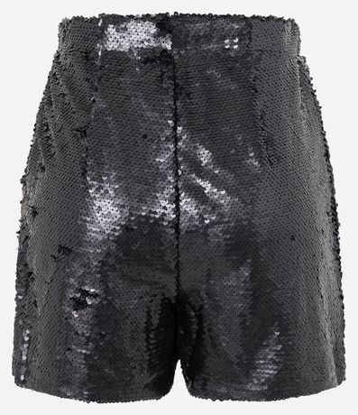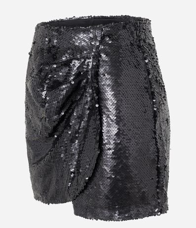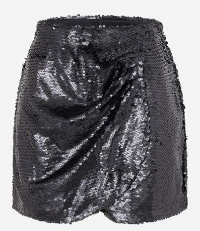 Short saia confeccionado em malha com paetês com franzidos no transpasse.