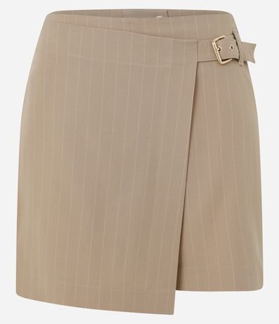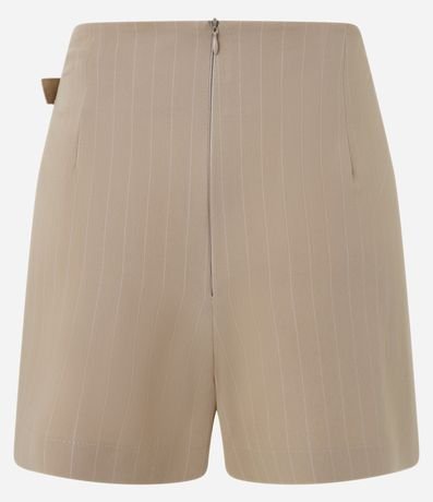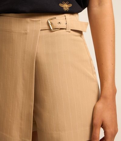 Ref: Short saia em poliviscose, cós com passante único lateral e detalhe de cinto com fivela de metal, fechamento por zíper traseiro e listrar de risca de giz.