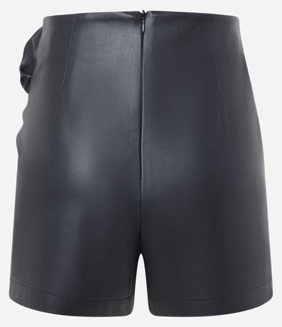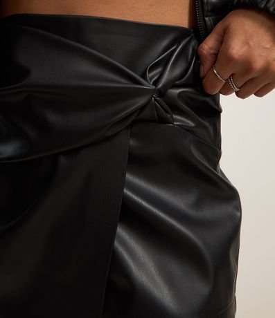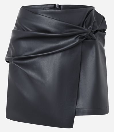Ref: Short saia feminino, confeccionado em PU, com fechamento em zíper nas costas. A peça conta com detalhe transpassado e torcido na parte frontal.