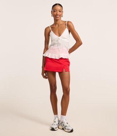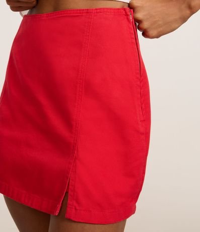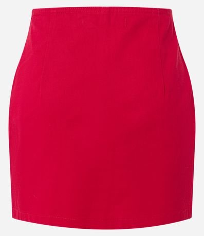 Ref: Short saia de cintura média, confeccionada em sarja, com recortes frontais e fendinnhas na barra.Este produto possui material mais sustentável em sua composição, sendo ambientalmente mais responsável.