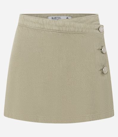 Ref: Short saia curto feminino, confeccionado em sarja, com cós fixo e sobreposição frontal transpassada. Possui abotoamento lateral.