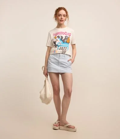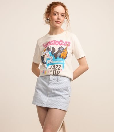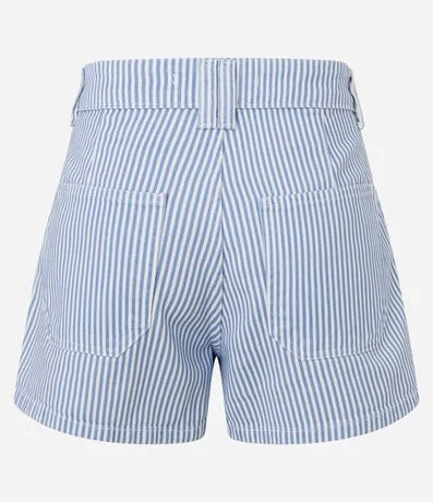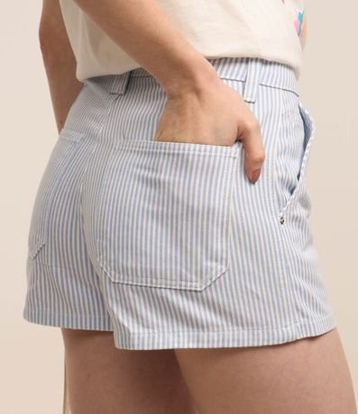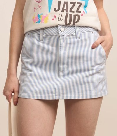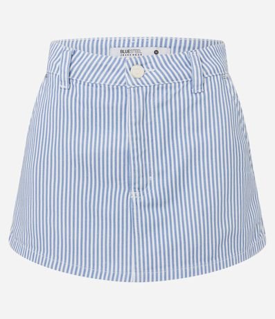 Ref: Short saia curto, confeccionado em sarja, listradinho, com bolso faca.