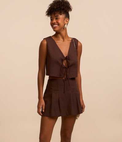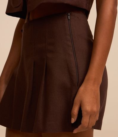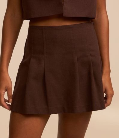 Ref: Short saia curto, confeccionado em tricoline, fechamento por zíper invisível e com pregas.