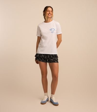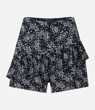 Ref: Short saia confeccionado em viscose com transpasse assimétrico e estampa floral liberty.