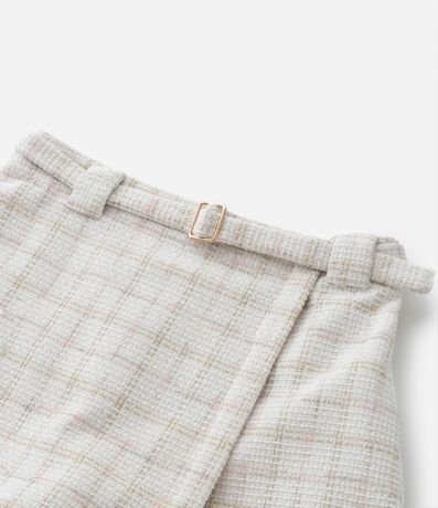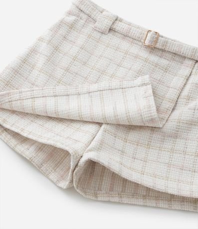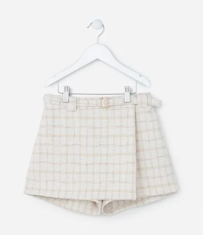 Short Saia Envelope Infantil em Tweed com Estampa Xadrez - Tam 5 a 14 Anos