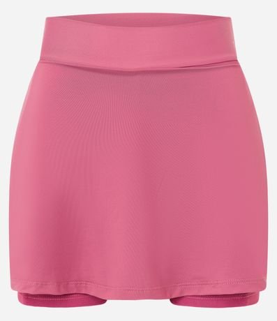 Short saia esportivo confeccionado em microfibra sem estampa. A peça tem bolso funcional.