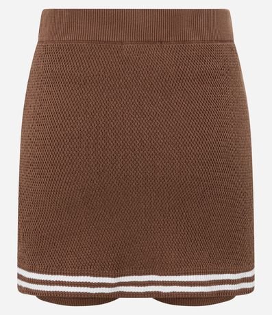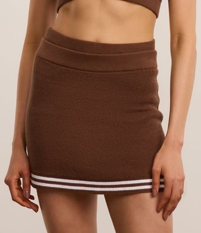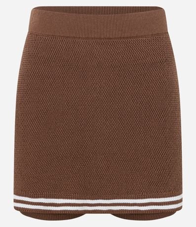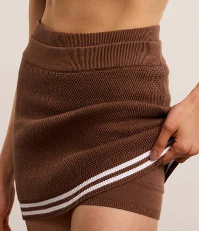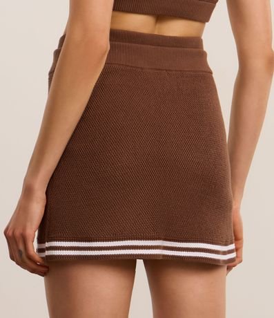 Ref: Short saia esportivo confeccionado em tricô de algodão certificado. A peça é lisa apenas com detalhe de listras na barra.