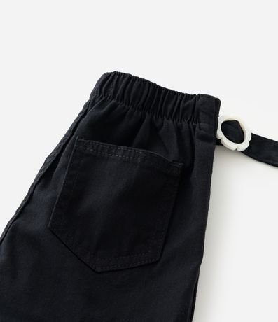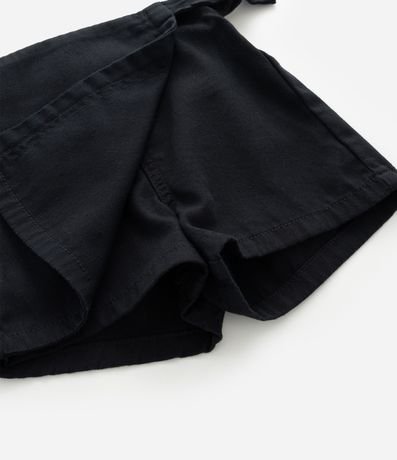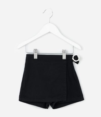 Short saia infantil confeccionado em sarja de algodão certificado BCI, com estrutura encorpada e toque confortável. Possui cós com elástico para melhor ajuste, recorte transpassado frontal que simula saia e short interno embutido. O aviamento floral aplicado na lateral adiciona delicadeza ao visual, garantindo conforto e estilo para o dia a dia.