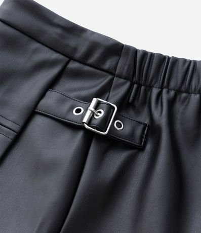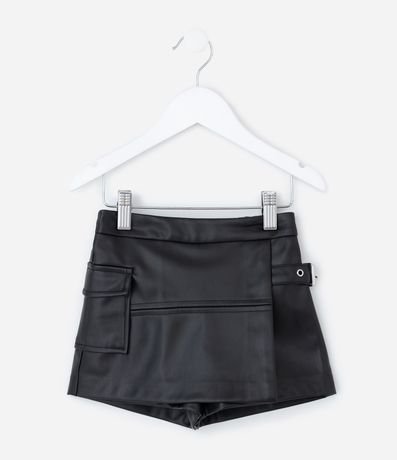 Short saia infantil confeccionado em PU com acabamento liso e estrutura encorpada. Possui recorte frontal que simula saia com short interno embutido, bolso cargo lateral com lapela, cós com elástico traseiro para melhor ajuste e detalhe de fivela lateral decorativa. A peça garante conforto, segurança e visual moderno para o dia a dia.