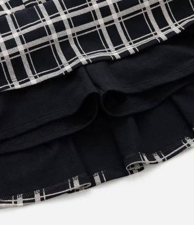 Ref: Short saia infantil confeccionado em algodão, com cós elástico e estampa xadrez.