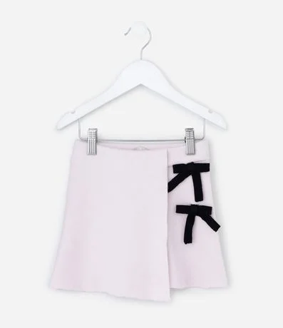 Ref: Short saia infantil confeccionado em efeito tricô macio, com sobreposição frontal que cria efeito de saia e laços aplicados que valorizam o visual. Possui estrutura confortável e acabamento suave, confeccionado em viscose certificada.