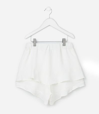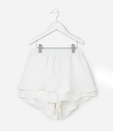 Ref: Short saia infantil confeccionada em airflow através de boas práticas ambientais. Possui cós com elástico, babadinhos e texturizado.