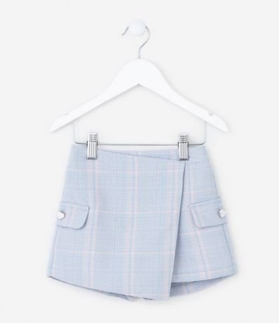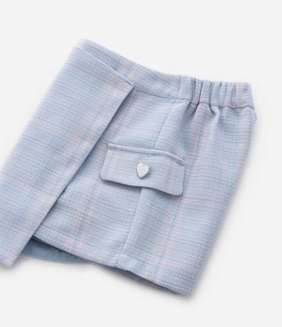 Ref: Short saia confeccionado em tweed, com cós elástico, lapelas nas laterais com botãozinho delicado de coração.