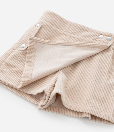 Ref: Short saia infantil confeccionada em veludo cotelê, com cós elástico, detalhes de botões no cós e na frontal. Possui textura canelada.