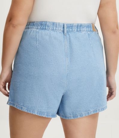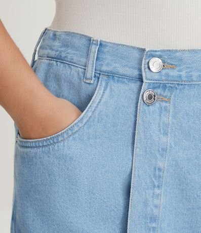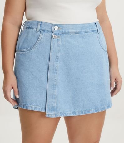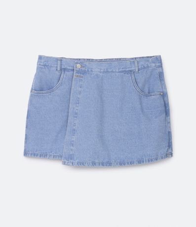 Ref: Short saia jeans, com fechamento transpassado frontal, com bolsos e passantes no cós.