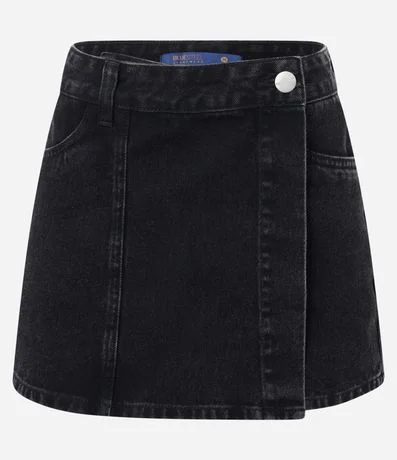 Short Saia Jeans com Sobreposição e Botão no Cós
