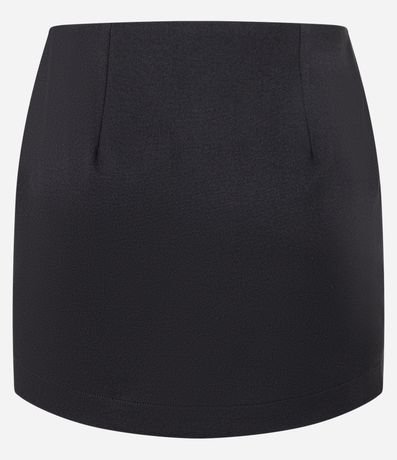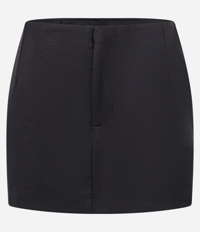 Mini short saia alfaiatado, sem estampa e com recorte no bolso.