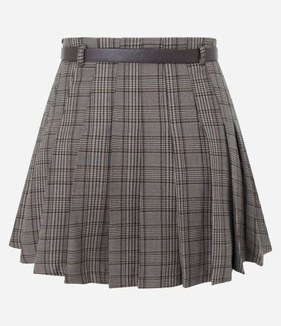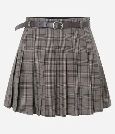 Short saia feminino confeccionado em viscose certificada. Possui estampa xadrez, pregas marcadas, estrutura de short por baixo, garantindo conforto e segurança. O cós é reto e vem acompanhado de cinto ajustável com fivela metálica.