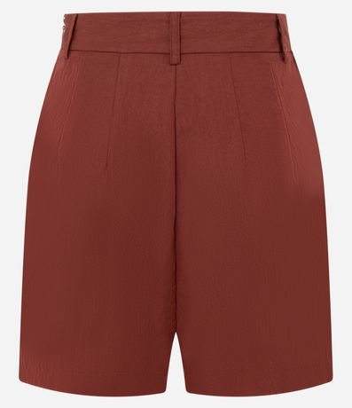 Short saia curto confeccionado em viscose certificada. Possui modelagem estruturada, pala assimétrica na cintura, criando efeito transpassado na parte frontal. Possui bolso embutido discreto e acabamento clean nas bordas.