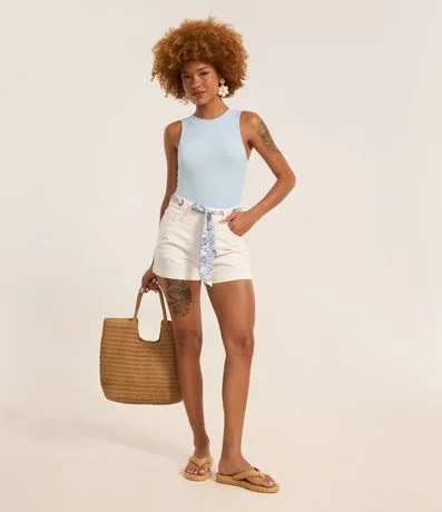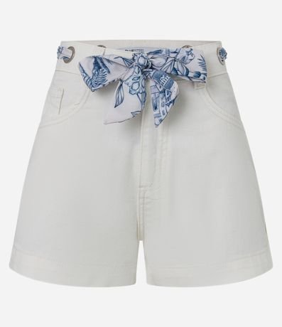 Ref: Short slim, confeccionado em sarja, com passantes no cós, fechamento tradicional e bolsos. Peça com cinto lenço estampado. Este produto possui algodão certificado em sua composição, sendo ambientalmente mais responsável.