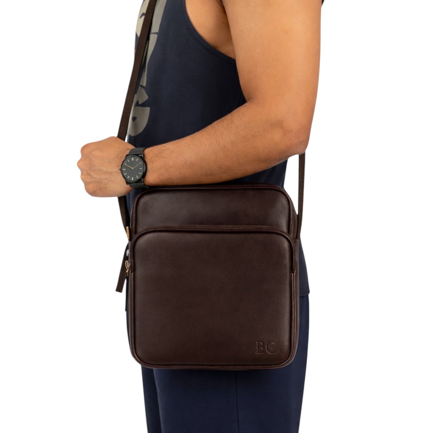 Shoulder Bag de Couro Legítimo Zup | Bolsa Unissex com Alça de Nylon