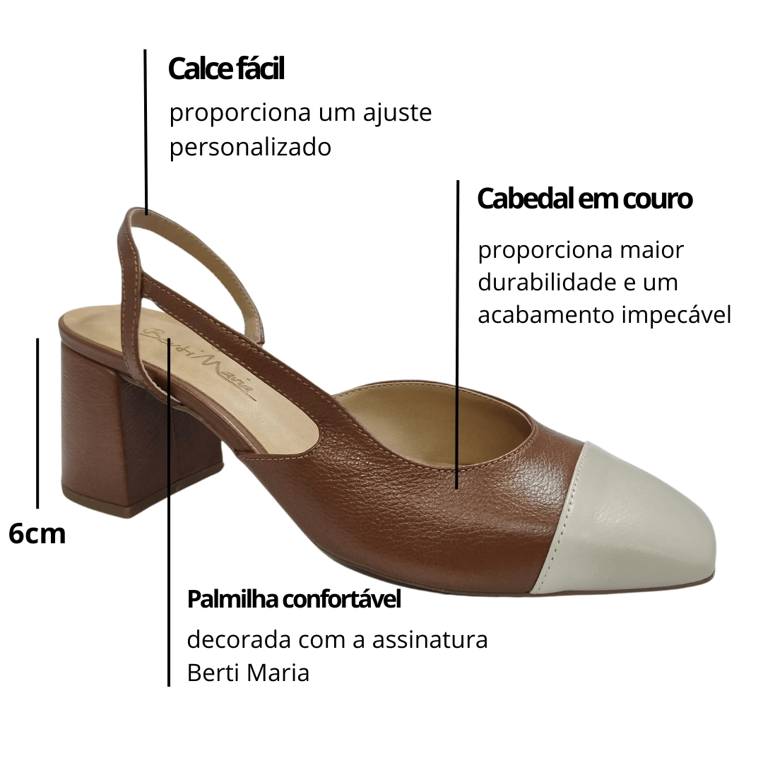 Modelo: Slingback Berti Maria Feminino Gelo Chocolate Couro