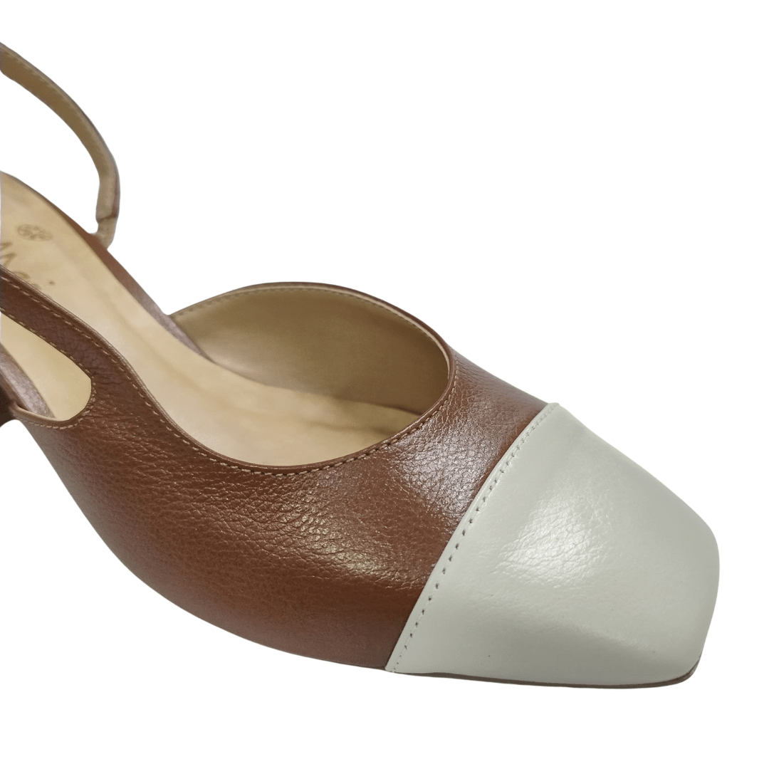Slingback Berti Maria Feminino Gelo Chocolate Couro